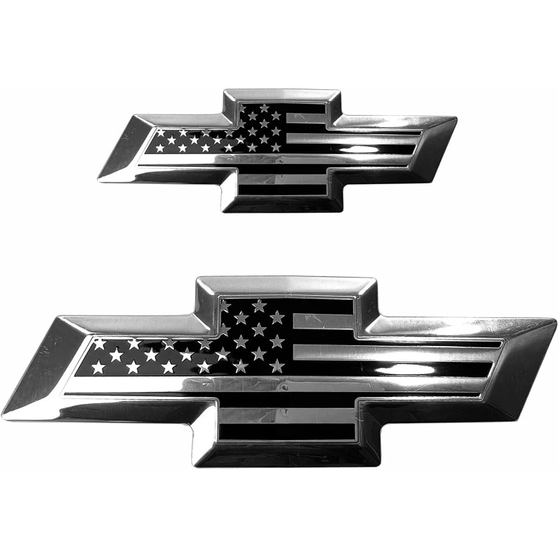 - Front and Tailgate set, Overlay Black American flag Emblem, Bowtie Overlay Metal Emblem. Compatible with: 2015-2018 Suburban and Tahoe part number rear: 22814069 Front: 22814066