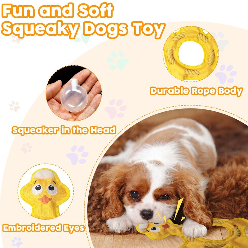 Everpwr Squeaky Dog Toys Plush Toys, Tug of War Dog Toys Interactive Play Toy, Dog Chew Toy with Cotton Rope Material, and Squeaker for Teeth Cleaning & Boredom for Small, Medium and Large Dog(Chick)