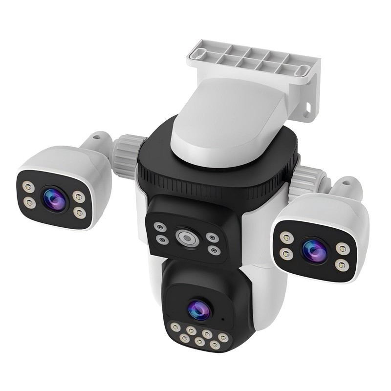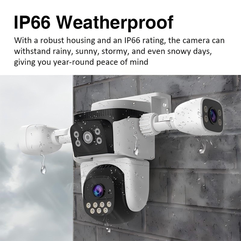 - 【Three Cameras In One, 2K HD Video】one body equipped with three cameras: the central camera can rotate horizontally from 0 to 270° and vertically from 0 to 90°. The two side cameras support manual horizontal adjustment of up to 180° and vertical adjustment of up to 180°. This versatile 3-in-1 camera delivers 2K High Resolution video quality and provides a complete 360° view, ensuring full coverage with no blind spots.