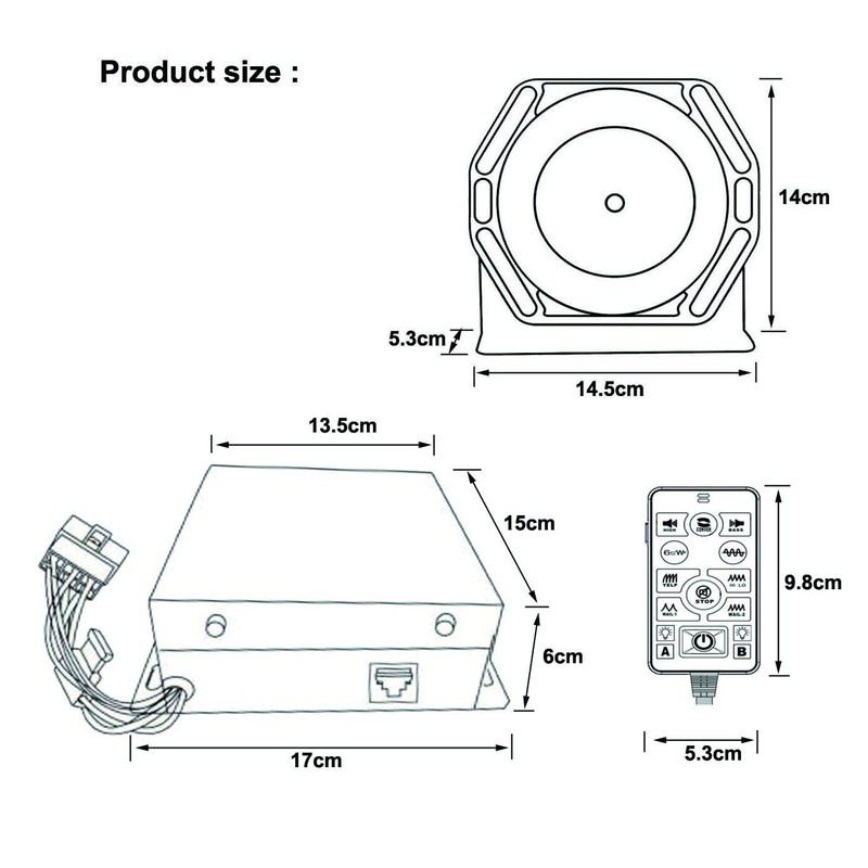 - One pack includes: 1 Main Siren Box+1 Octangular Speaker+1 Wired Remote with Clear Microphone/PA system+Wiring Accessories+User's Guide.