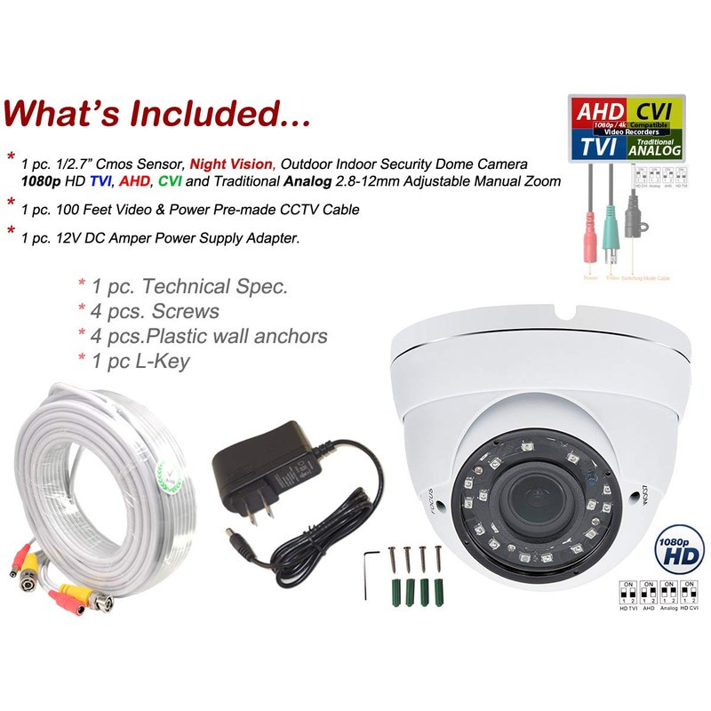 • 100FT Video&Power Pre-made CCTV cable and 12V DC 1 Ampere power supply are included in this listing