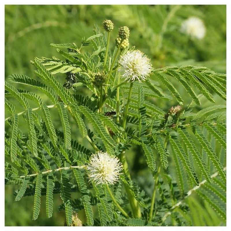 This nitrogen-fixing legume provides nutrition for wild animals as well as the soil, since its seeds are a favorite food of birds, deer, antelope, and rodents. This dual purpose gives it the distinction of being one of the most important native legumes. It has a wide range of adaptability, and can be found in many soils and growing conditions. One unique feature of the leaves is their sensitivity to light and touch, resulting in a temporary wilting to control temperature and prevent the loss of moisture. Children of Native American tribes once used the distinctive round seed heads of this plant as rattles.