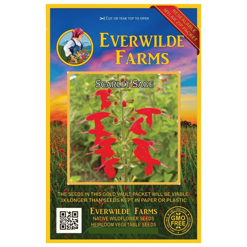 Everwilde Farms - 1000 Scarlet Sage Native Wildflower Seeds - Gold Vault Jumbo Seed Packet