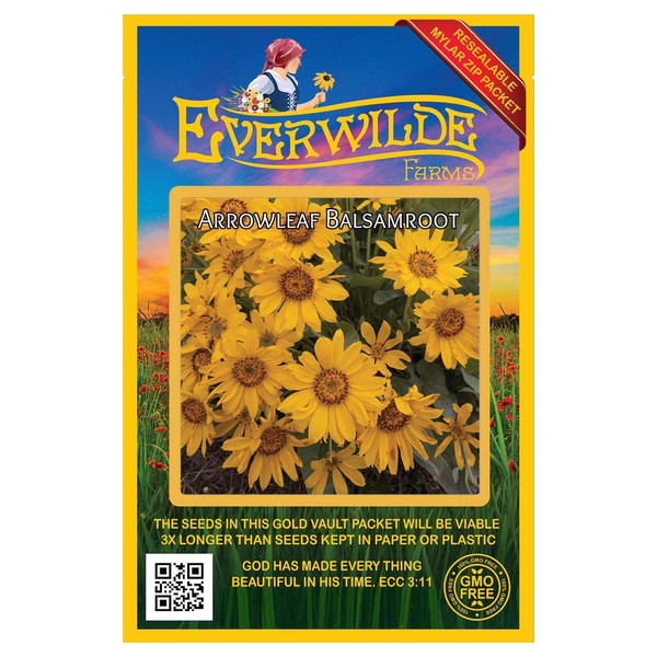 Everwilde Farms - 150 Arrowleaf Balsamroot Native Wildflower Seeds - Gold Vault Jumbo Seed Packet