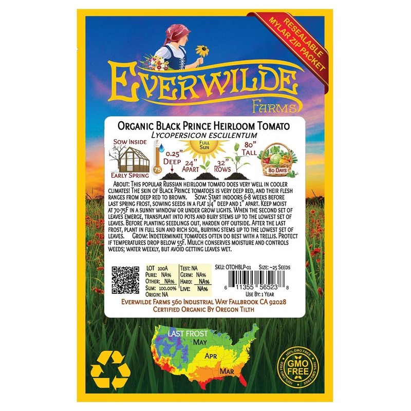 Everwilde Farms - 25 Organic Black Prince Heirloom Tomato Seeds - Gold Vault Packet