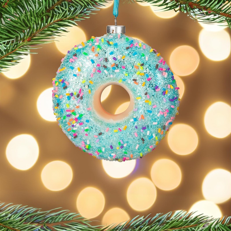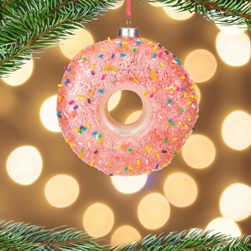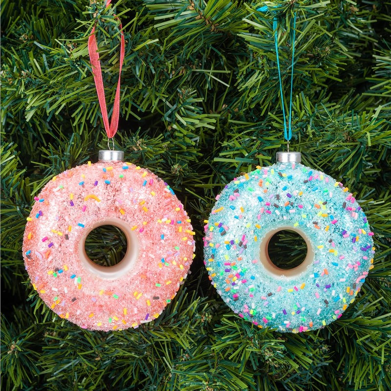 Every Day is Christmas Glass Blown Ornaments Cute Hand Made Figurines Tree Decoration, Donuts Set of 2