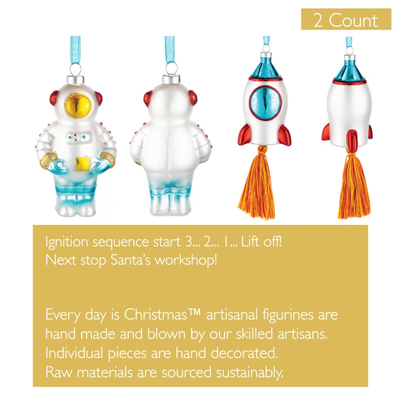 Every Day is Christmas Glass Blown Ornaments Cute Hand Made Figurines Tree Decoration, Rocket