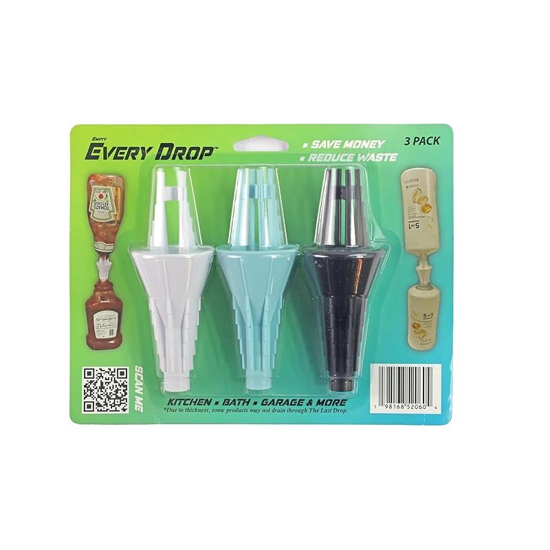 Every Drop 3 Pack Universal Bottle Emptying Kit Transfer Connector for Soap, Lotion, Shampoo, Conditioner, and Kitchen Condiments, Mess Free Leak Proof Funnel Coupler