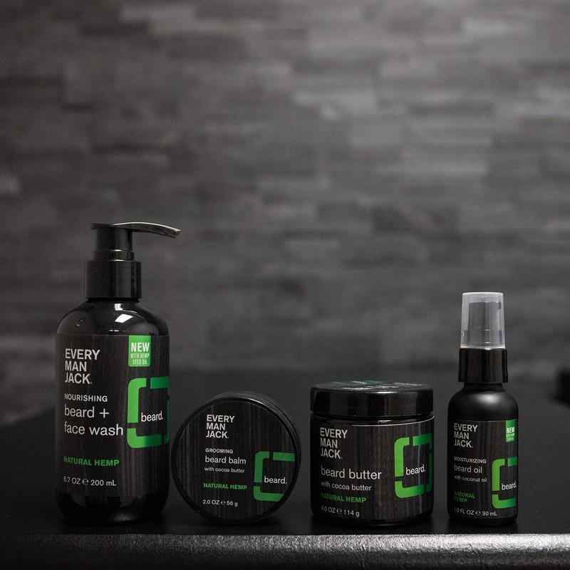 - Find your balance between well-groomed and rugged with Every Man Jack Natural Hemp Beard Butter. This Beard Butter helps to rejuvenate and style dry and unruly beards while helping to relieve itchiness and curbing runaway hairs. Narual Hemp Seed oil (non-THC) helps to strengthen while fresh herbs fragrance with clary sage and bergamot leave a refreshing light scent.