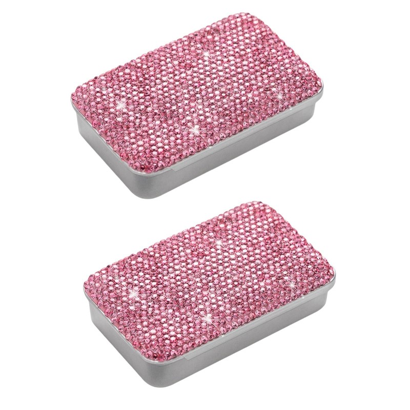 EveryBling 2pcs Dental Floss Holder Bling Gum Container Small Metal Tin Box Case for Q-tip,Cotton Swab(Pink