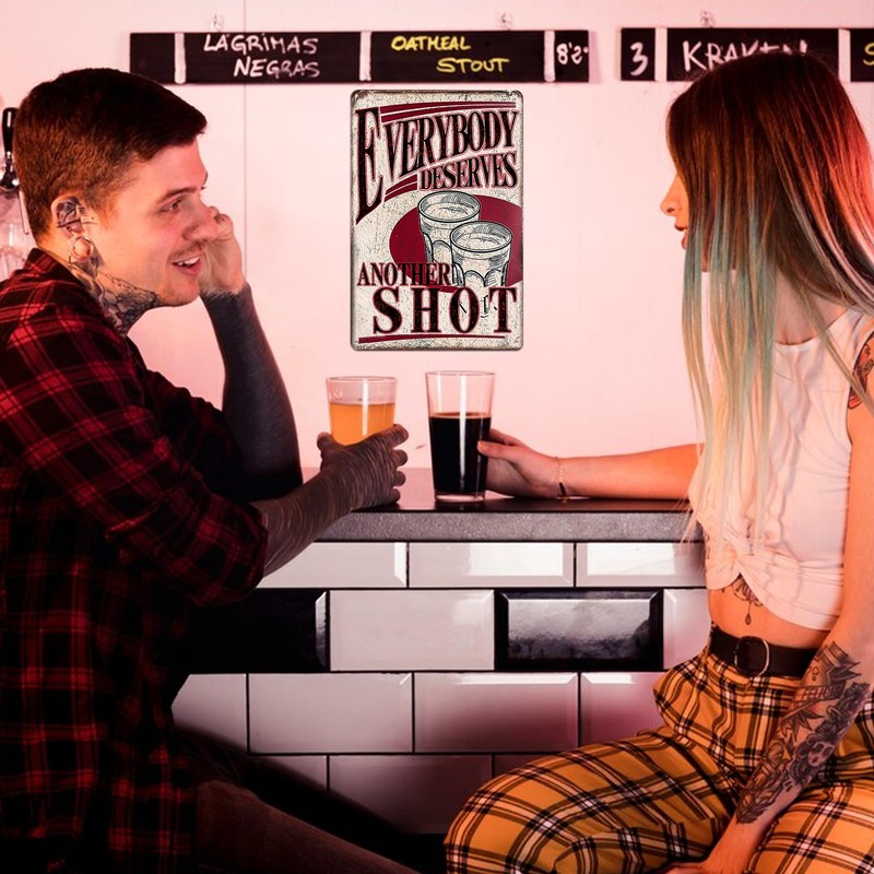 Everybody Deserves Another Shot Vintage Bar Retro Sign Man Cave Wall Stuff For Home House Garage Tin Sign 8x12 In (2515)
