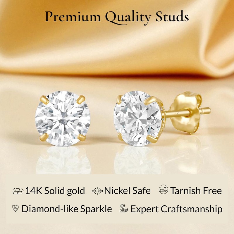 - GENUINE QUALITY: Everyday Elegance 14K solid yellow gold cubic zirconia stud earrings for a timeless, luxurious look.