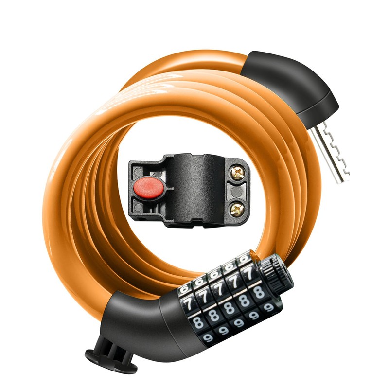 - with Mounting Bracket: Equipped with a free mounting bracket, you can easily add the bike cable locks to other objects; quick installation button, easy to install or remove the lock. Self-rolling design, easy to carry.