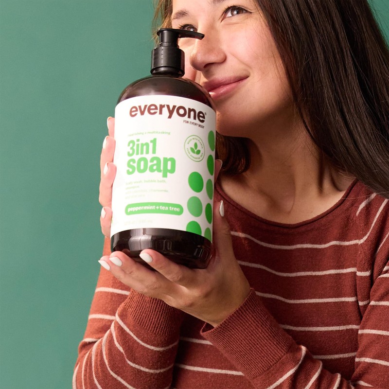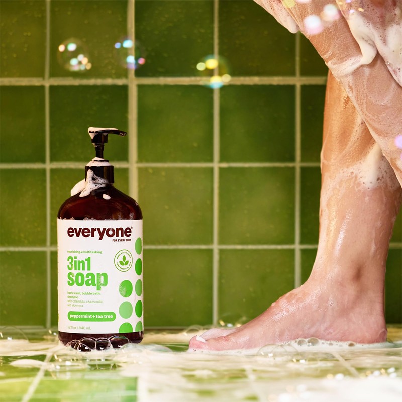 everyone for every body Everyone 3-in-1 Soap, Body Wash, Bubble Bath, Shampoo, 32 Ounce (Pack of 2), Peppermint Tea Tree, Coconut Cleanser with Organic Plant Extracts and Pure Essential Oils
