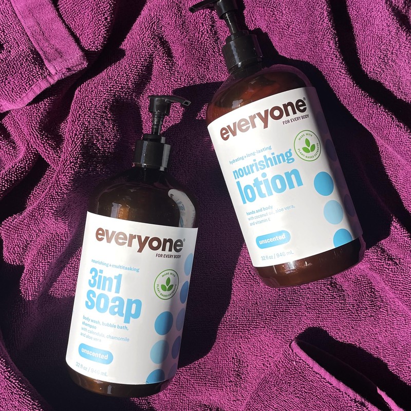 - Contains: (2) 32 Ounce 100% Recycled Plastic Bottles of Everyone 3in1 Unscented Soap