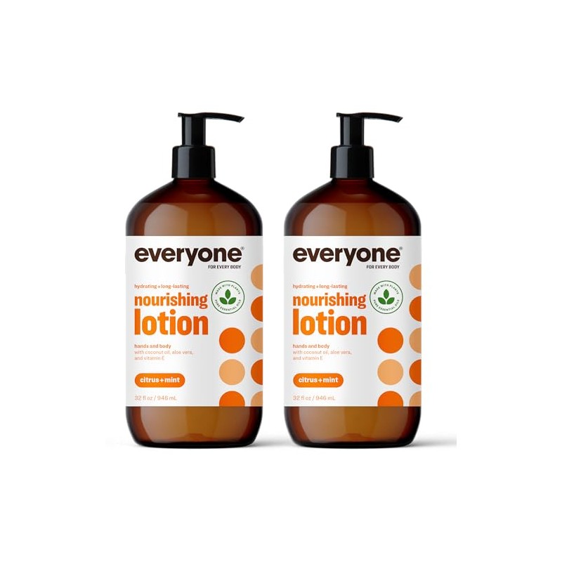 everyone for every body Everyone Nourishing Hand and Body Lotion, 32 Ounce (Pack of 2), Citrus and Mint, Plant-Based Lotion with Pure Essential Oils, Coconut Oil, Aloe Vera and Vitamin E