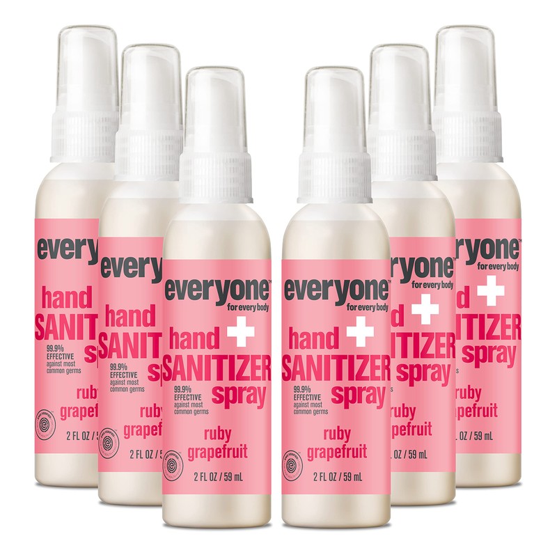 Everyone Hand Sanitizer Spray, 2 Ounce (Pack of 6), Ruby Grapefruit, Plant Derived Alcohol with Pure Essential Oils, 99% Effective Against Germs