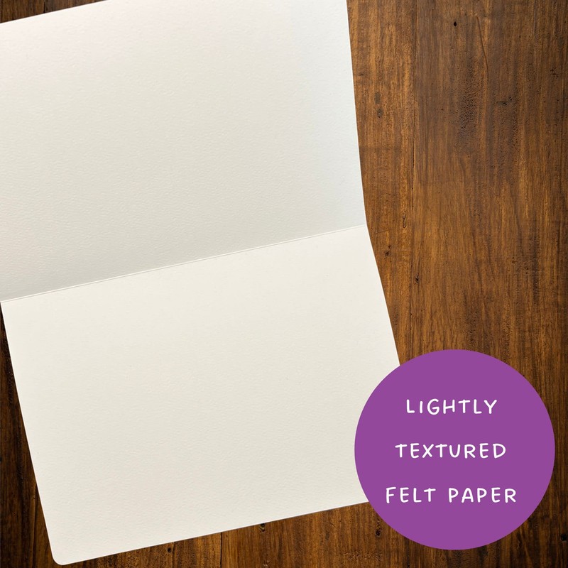 - Each card measures 7 by 5 inches when folded and is printed in the USA on thick paper that’s textured enough to feel important but smooth enough for easy writing. Each card comes with one premium kraft colored greeting card envelope.