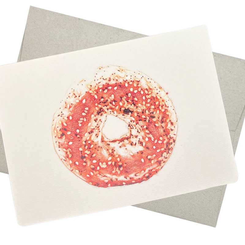 Everything Bagel Greeting Card with Envelope (5X7 Inch and Blank Inside) Jewish Themed for Passover, Bar and Bat Mitzvah, Yom Kippur, Rosh Hashanah, Hanukkah, or another celebration (Bagel)