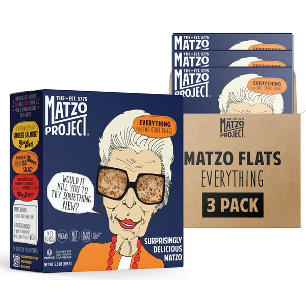 The Matzo Project Crispy Matzo Flats, Flatbread Crackers Sprinkled with (Almost) Everything, Vegan, Nut Free, All Natural, 3-Pack., 5.5 oz. Each, Kosher but NOT Kosher for Passover