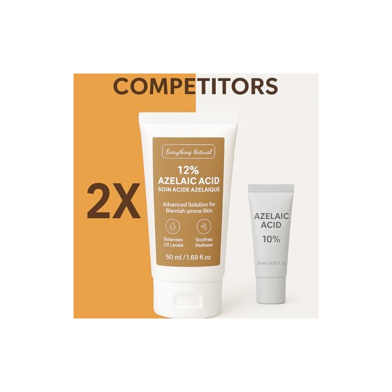 Everything Natural 50ml Azelaic Acid Face Cream 12% | Extra large | Natural Face Cream for Fresher and Smoother Skin
