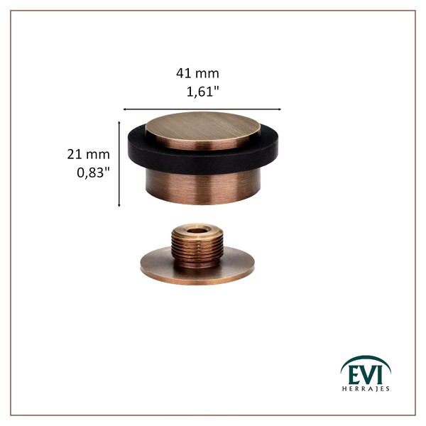 EVI | Adhesive Doorstop | 1.37'' X 0.8'' | Threaded Base | Black Rubber | Brass | Aged Leather Finish | Includes Screw + Clamping Anchor | Mod. I-203