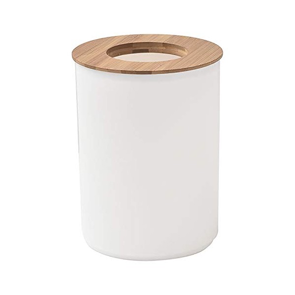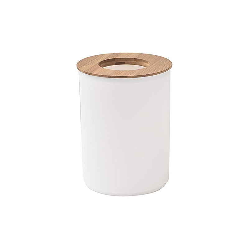 EVIDECO Round Bath Floor Trash Can Padang Waste Bin Open Top Lid-Plastic 5-liters-1.3-gal Bamboo (White)