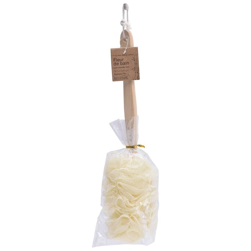 - NATURAL MATERIALS: Made with natural wood handle, this mesh bath sponge will give you a relaxing cleansing. Dimensions: 15 1/4”L x 4”W x 3"H. Color: natural