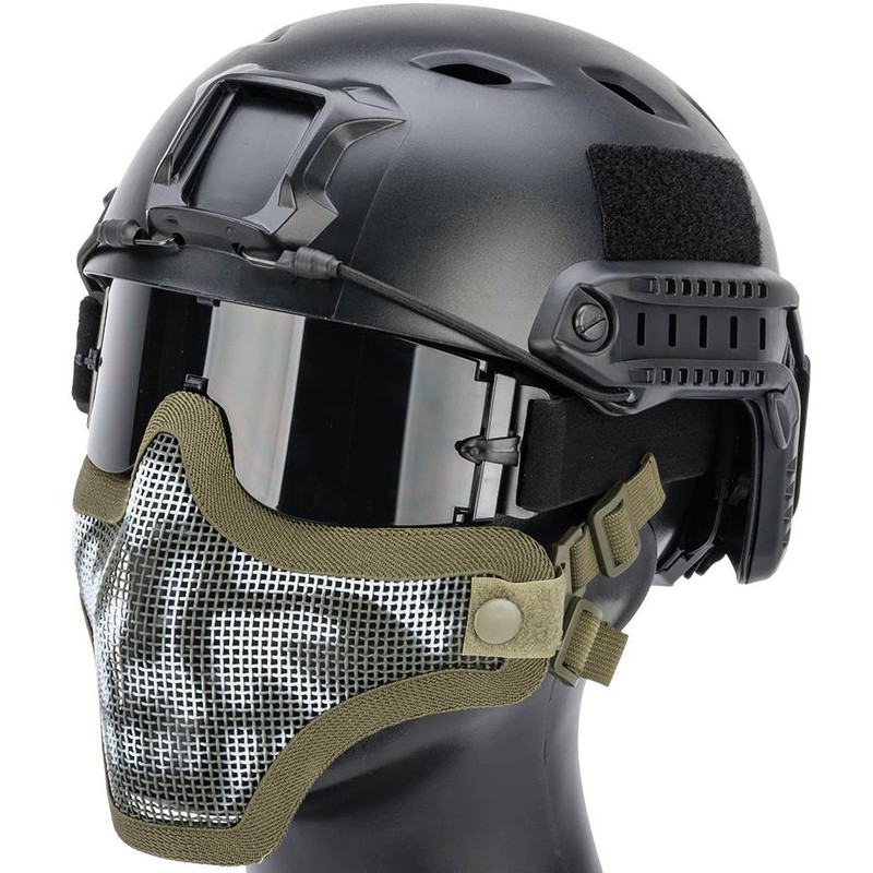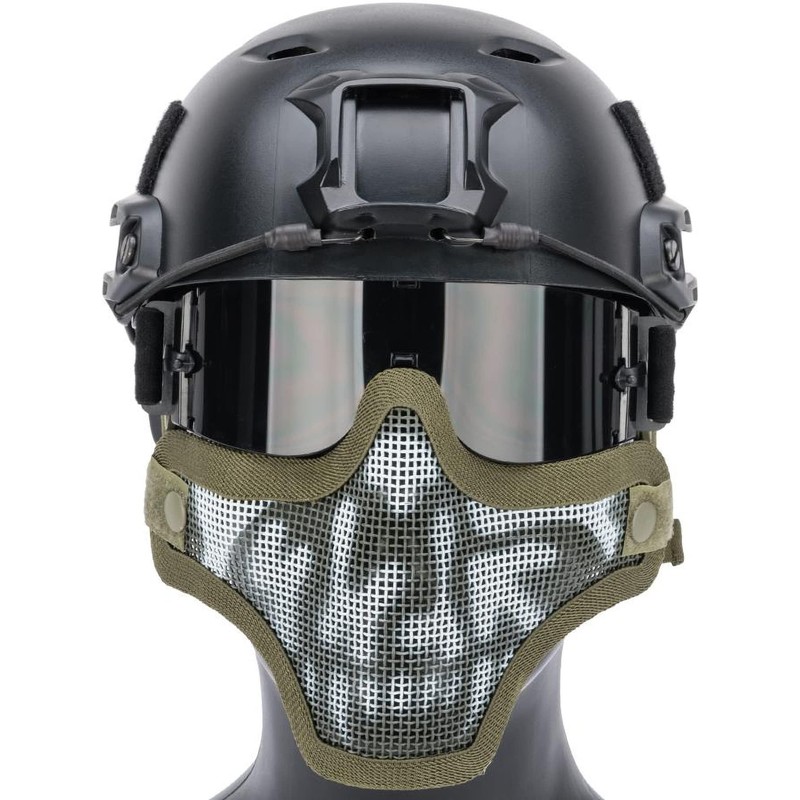 Evike Airsoft - Matrix Iron Face Carbon Steel Mesh Striker V1 Lower Half Face Pro (Color: OD Green/Skull)