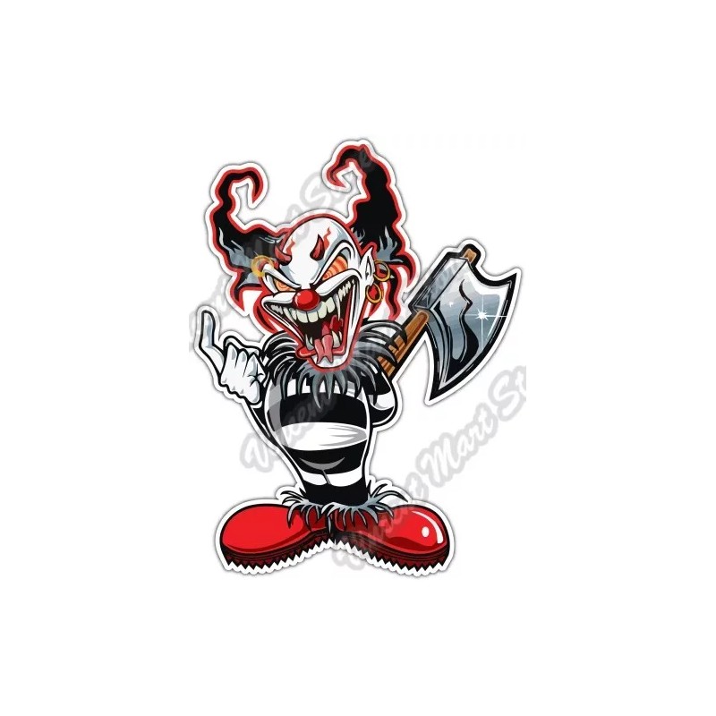 Evil Clown Jester Joker Angry Fangs Axe Car Bumper Vinyl Sticker Decal 4"X5"