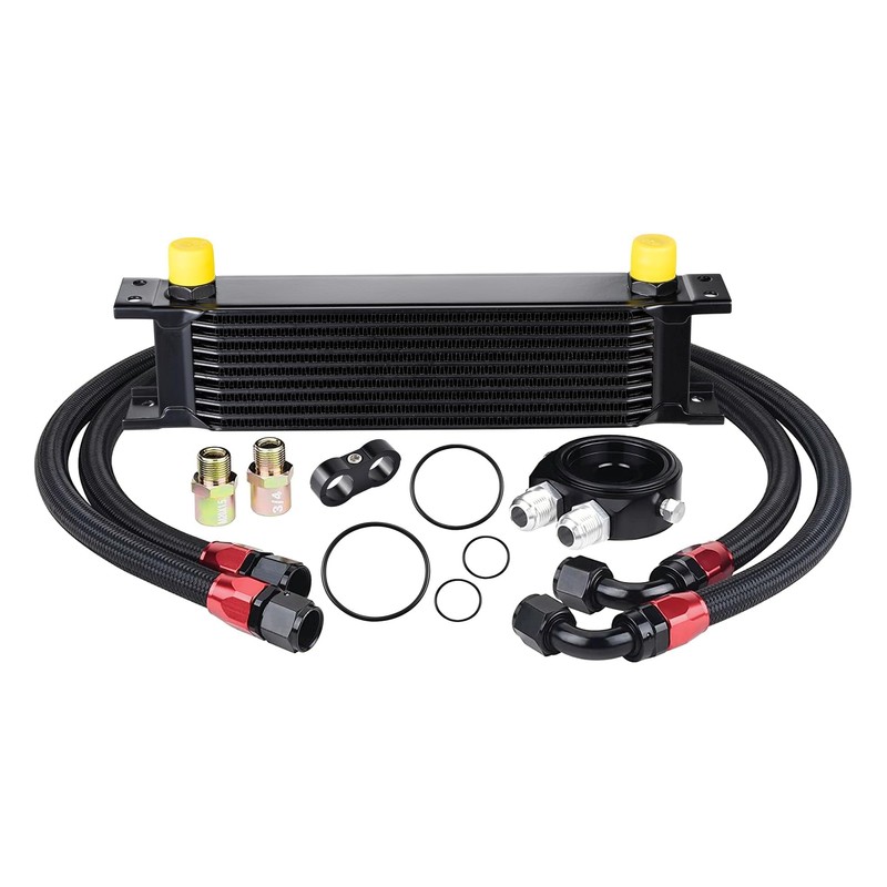 EVIL ENERGY 10 Row Oil Cooler Kit, 10AN Transmission Engine Cooler British Radiator Universal Aluminium Black
