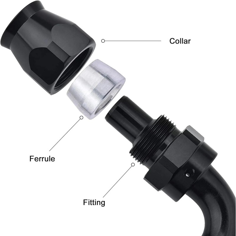 EVIL ENERGY 2PCS 10AN PTFE Hose End Fitting 180 Degree Black for PTFE E85 Hose