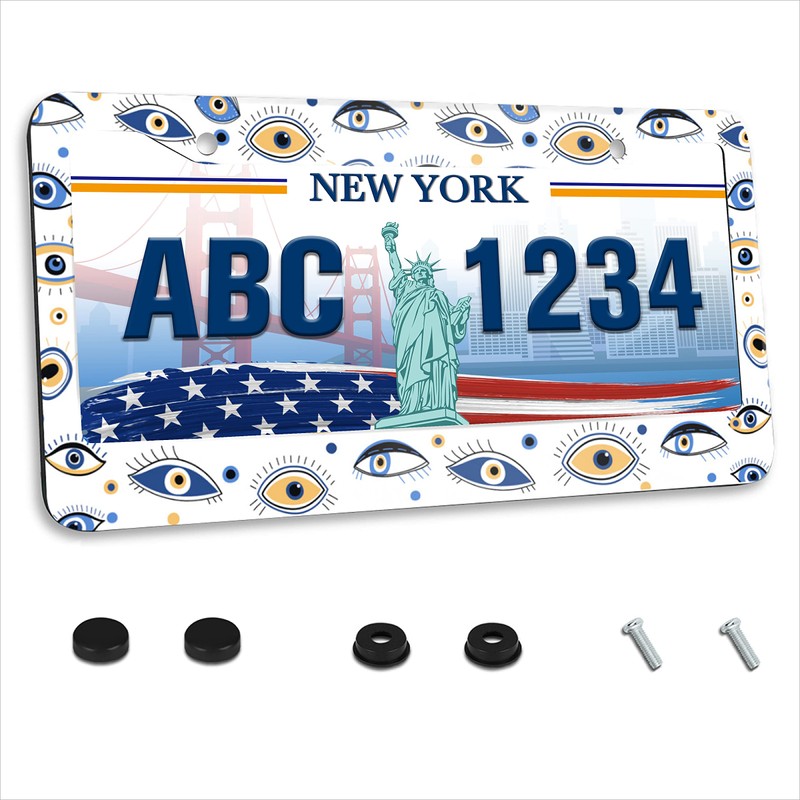 Evil Eyes License Plate Frame Eye License Plate Frame Stainless Steel Auto Parts Decoration with Screws License Plate for Men Women 12x6 Inch