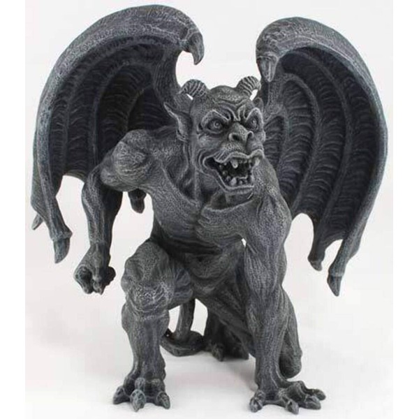 In medieval times, ancient architects and stone carvers used gargoyles on buildings as a way to ward off evil spirits and bad luck. Made of cold cast resin, this wickedly evil devil-like winged gargoyle is perfect for scaring away negative energy. Measuring 6 1/2 inches tall, 6 1/2 inches wide, and 4 inches deep, he'll make a great addition to your home. This gargoyle also makes a great present for the holidays or for housewarming gifts. It looks great on bookshelves, end tables and nightstands.
