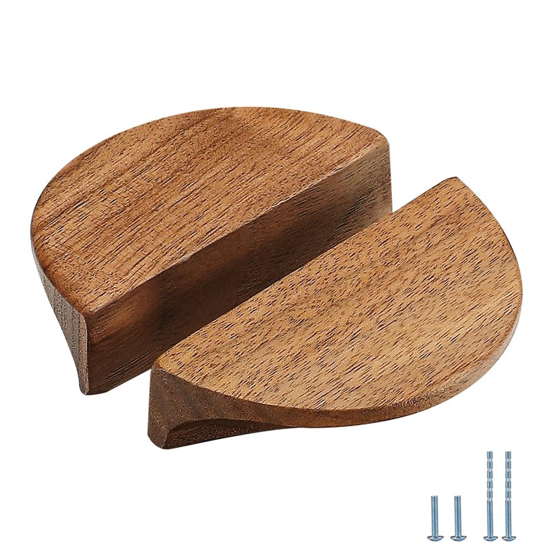 Evionlin 3.15 in-Walnut Wood 1 Pair Circular Wood Grain Cabinet Drawer Handles