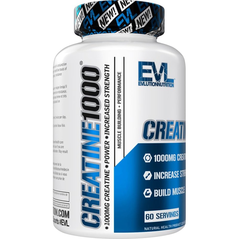 Evlution Evlution Nutrition Creatine1000-1 Gram of Pure Creatine Monohydrate in Each Serving - Increase Lean Muscle & Improve Strength while Training - Veggie Capsules - 60 Servings