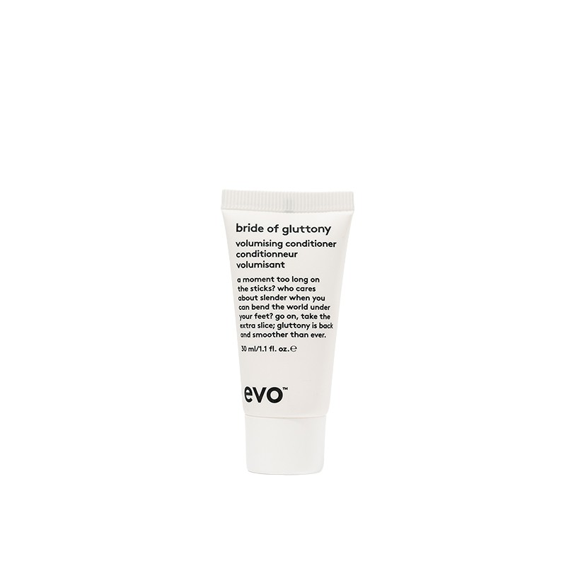 A lightweight volumising conditioner to build body and maintain fullness, while strengthening fine hair. What are the features and benefits of Evo Bride Of Gluttony Volumising Conditioner 30ml? Builds body - adds volume without weighing down hair Improves condition - adds softness and shine, reduces frizz, helps detangle and improve manageability Protects colour - helps lock-in colour vibrancy and reduce colour fading Who is Evo Bride Of Gluttony Volumising Conditioner 30ml for? Ideal for all hair types; especially fine hair.
