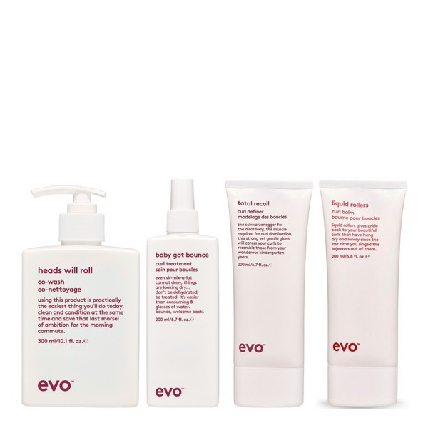 The Evo Coily Hair Routine Quad Bundle is your ultimate solution for managing and enhancing coily hair. This comprehensive bundle is designed to provide everything you need for a complete coily hair care routine. With a focus on hydration, definition, and nourishment, each product in the Evo Coily Hair Routine Quad Bundle works synergistically to enhance your natural curls, reduce frizz, and promote healthy, bouncy hair. Whether you're looking to cleanse, define, or treat your curls, this bundle has you covered. What is included in Evo Coily Hair Routine Quad Bundle? • Heads Will Roll Co-Wash 300ml • Total Recoil Curl Definer 200ml • Liquid Rollers Curl Balm 200ml • Baby Got Bounce Curl Treatment 200ml What are the features and benefits of Evo Coily Hair Routine Quad Bundle? Heads Will Roll Co-Wash: This gentle cleansing conditioner is perfect for coily hair, providing a thorough cleanse without stripping natural oils, leaving your curls soft and manageable. Total Recoil Curl Definer: Enhance your curl pattern with this defining cream that adds structure and bounce, ensuring your curls stay in place all day long. Liquid Rollers Curl Balm: A lightweight balm that hydrates and smooths curls, reducing frizz and adding shine for a polished, natural look. Baby Got Bounce Curl Treatment: A deep conditioning treatment that nourishes and strengthens coily hair, promoting elasticity and reducing breakage. Who is Evo Coily Hair Routine Quad Bundle for? This bundle is perfect for anyone with coily hair looking to enhance their natural curls and maintain healthy, vibrant hair.