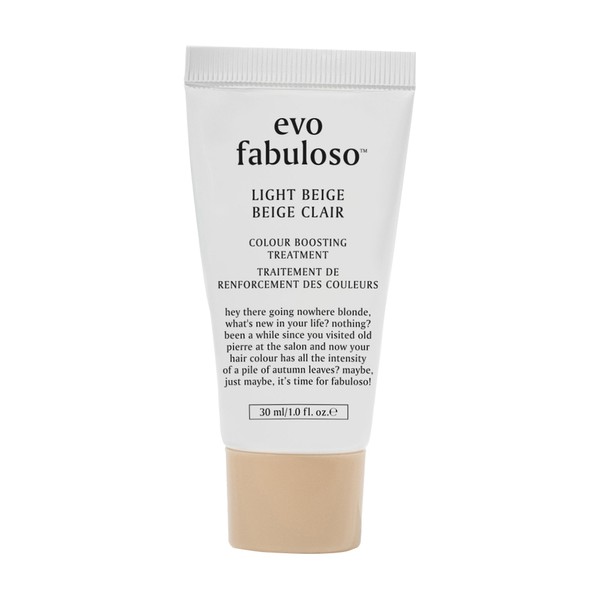 A colour boosting treatment that provides an instant colour boost, combined with a nourishing treatment to refresh or tone colour, revive and add shine in just 3 minutes. What are the features and benefits of Evo Fabuloso Light Beige Colour Boosting Treatment 30ml? REFRESHES/TONES COLOUR instantly refreshes/tones to intensify and extend the life of colour-treated hair REVIVES nourishing treatment softens and conditions hair ADDS SHINE restores and maintains moisture balance to reduce frizz and give brilliant shine Who is Evo Fabuloso Light Beige Colour Boosting Treatment 30ml for? Recommended for dull, dry, colour-treated light blonde to blonde hair.