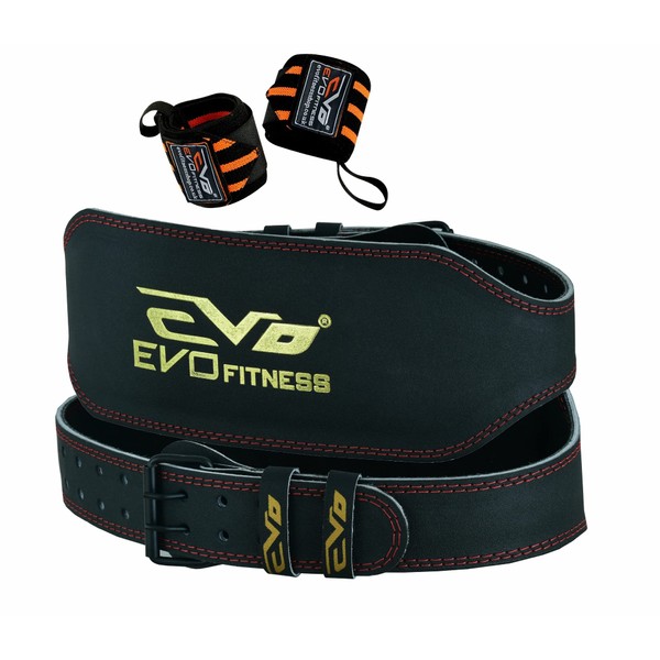 - ✅ EVO Fitness Weight Lifting Belt is made of Genuine cowhide leather, 18" Black wrist straps are included with belt, 7 mm thick weightlifting belt for men and women.By helping the users harness their inner power, the men powerlifting belt becomes useful for training, deadlifting, squatting, lifting, and cross-training among other work out routines of exercise.