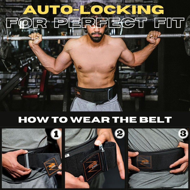 - ☛ [ AUTO-LOCKING ]: With a uniquely designed tension based auto-lock EVO Fitness Men Women Weight Lifting Belts are Made up of Specially Designed Premium Quality Neoprene and Nylon with FREE 18" Long Weight Lifting Wrist support Wraps