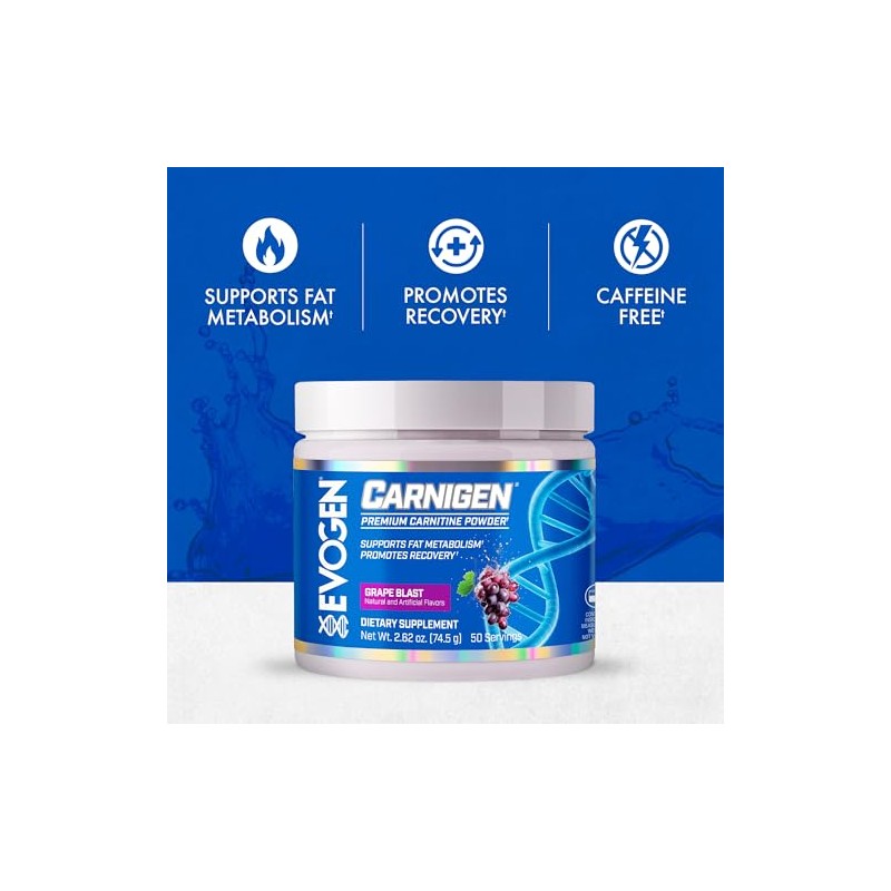 π β Evogen Carnigen, Tartrato De Carnitina, En Polvo, Acetyl-L-Carnitina, Fumarato De Carnitina, Bioperina, Uva - 2.33 Oz, 66 G, 50 Servings β π