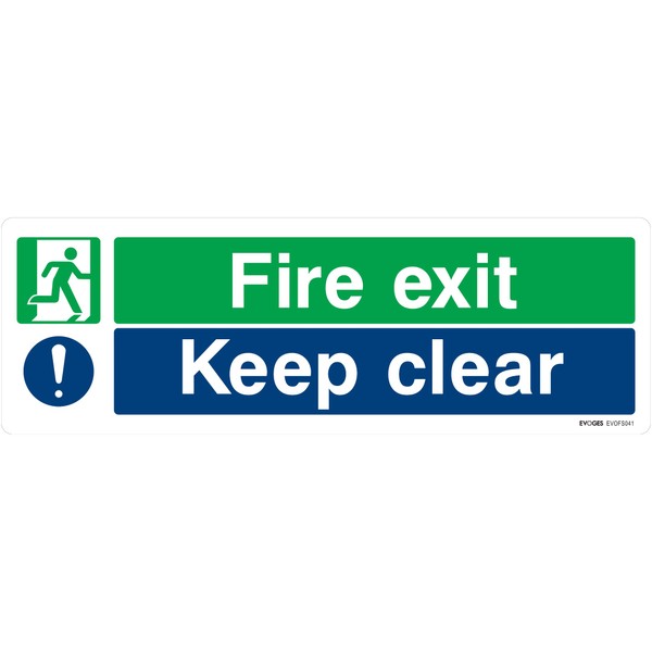 Evoges PVC Fire Exit Keep Clear Sign Round Edge 300mm x 100mm x 2mm