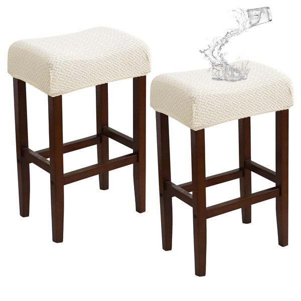 EVOLLER Waterproof Bar Stool Covers Set of 2 Rectangle Beige Jacquard Stretchable Backless Barstool Seat Cover Counter Bar Stool Slipcovers Washable