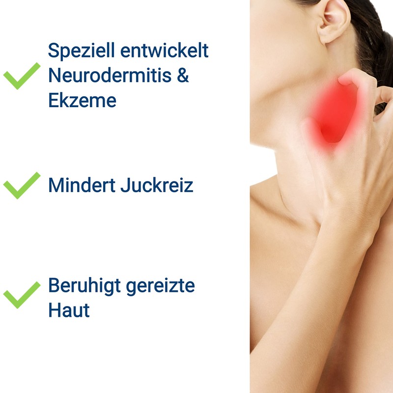 - Particularly soothing relief for eczema and neurodermitis, wounds, dry, itchy and irritated skin. Suitable for all skin types including sensitive skin. Rich lotion for face, hands and body. Suitable for all skin types including sensitive skin. Rich lotion for face, hands and body. Suitable for ages 3+ and adults. Absorbs quickly and provides a velvety soft skin feeling.