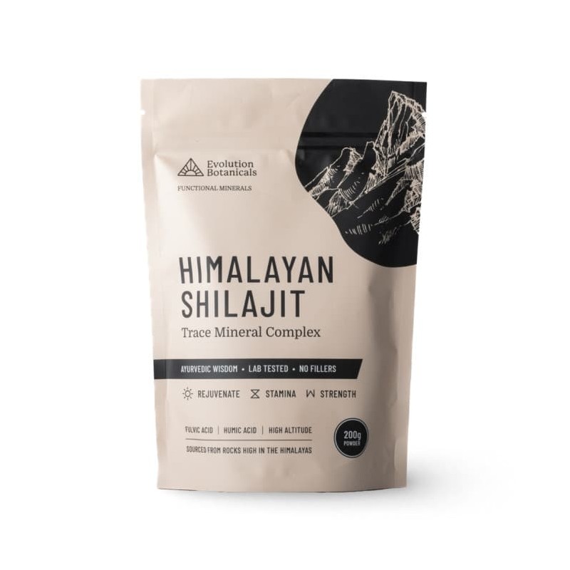 Unlock the primal power of Himalayan Shilajit and embark on a transformative journey of enhanced strength, stamina, energy, and overall well-being. Trust in the expertise of Evolution Botanicals to deliver the finest Himalayan Shilajit extract powder, carefully extracted to elevate your health and performance. Serving size 1 level teaspoon (1g) 200 Servings per Resealable Pouch (200g)