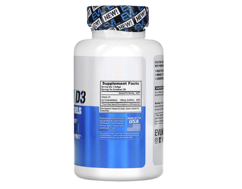Evolution Nutrition Vitamin D3 125mcg 5000IU Cholecalciferol Immune Support 120 softgels / 에볼루션뉴트리션 비타민D3 125mcg 5000IU 콜레칼시페롤 이뮨서포트 120소프트젤