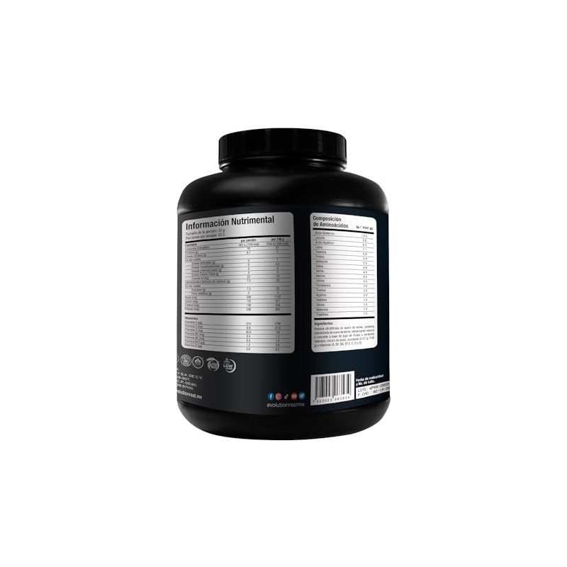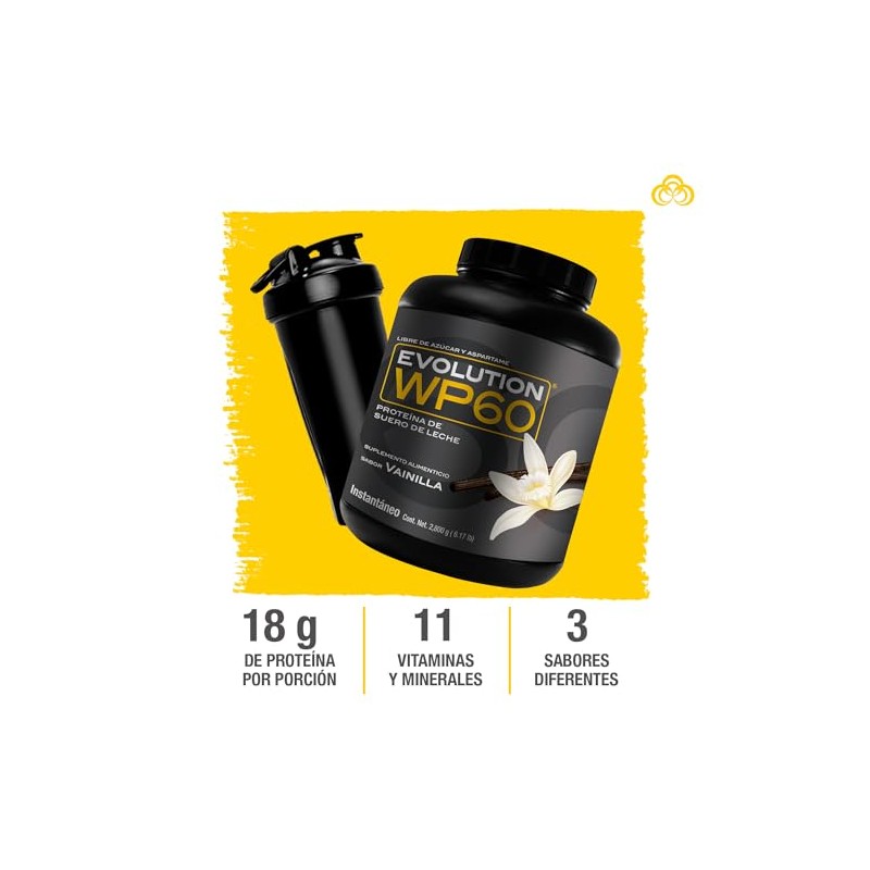 Acerca de este artículo PROTEÍNA DE SUERO DE LECHE. La proteína WP60 sabor vainilla de Evolution, es una mezcla de proteína concentrada y ultrafiltrada de suero de leche. Contiene vitaminas, minerales y todos los aminoácidos, tanto los esenciales como los no esenciales CARACTERÍSTICAS. Fórmula especializada Evolution de proteína 100% concentrada de suero de leche, baja en sodio, con proceso de ultrafiltracion que ayuda a su fácil digestión. Hecha de colorantes y saborizantes de origen natural. No contiene azúcar añadida USO RECOMENDADO. Tomarla diluida en 350 ml de agua o leche, idealmente después de un entrenamiento o realizar ejercicio, ya que ayuda a la recuperación. Brinda 18 g de proteína y 7.5 g de hidratos de carbono por porción CERTIFICACIONES. Contamos con certificaciones nacionales e internacionales. Este producto no es un medicamento. El consumo de este producto es responsabilidad de quien lo recomienda y de quien lo usa. No se recomienda tomarla durante el embarazo y lactancia EVOLUTION. Es una empresa mexicana con más de 10 años de experiencia en el mercado de nutrición deportiva y wellness. Gracias a su determinación, certificaciones, compromiso y visión, se ha posicionado como una de las líneas más completas de suplementos alimenticios en el mercado mexicano