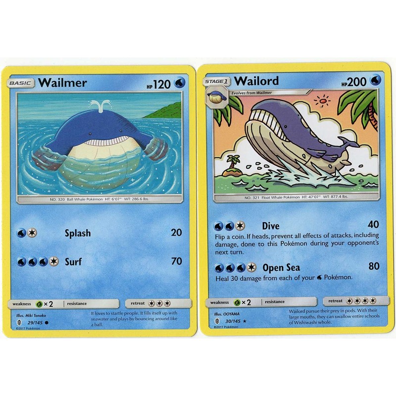 Evolution Set - Wailord & Wailmer - Guardians Rising 30/145-200 HP Rare Card lot