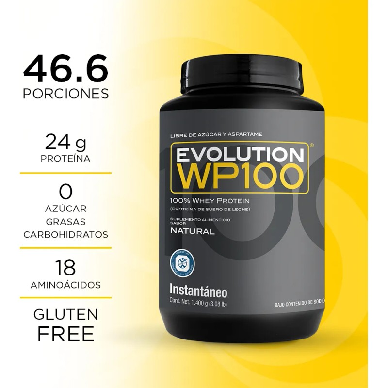 Evolution Wp100 Proteína de Suero de Leche, 0 Carbs Y 0 Grasas, Bote Natural De 1400g